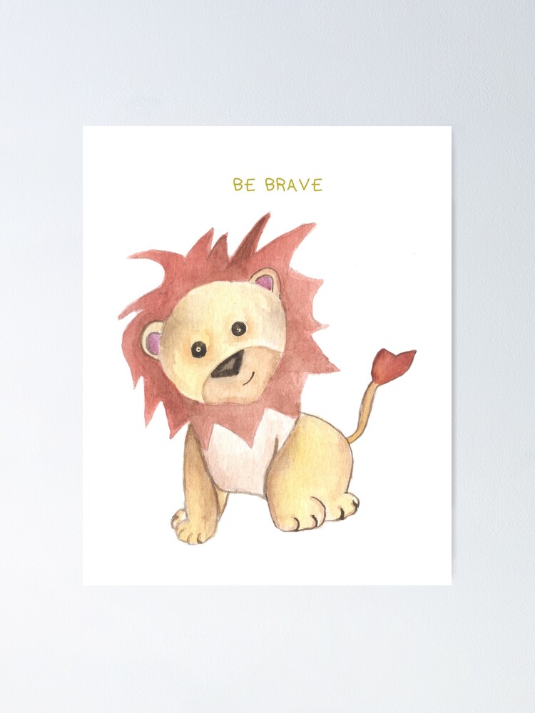 Be Brave Lion Print Nursery Kids Room Watercolor Painting Poster By Alifyalifestyle Redbubble