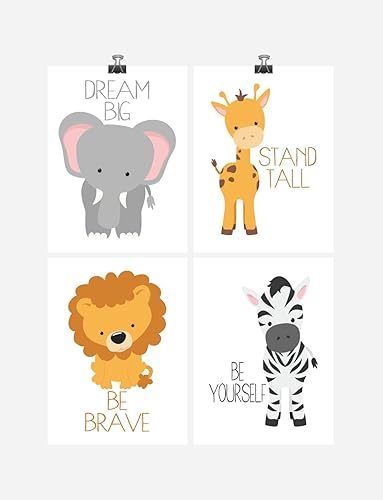 Amazon Com Safari Animals Motivational Nursery Art Print Set Of 4 Elephant Giraffe Zebra Lion Multiple Sizes Handmade