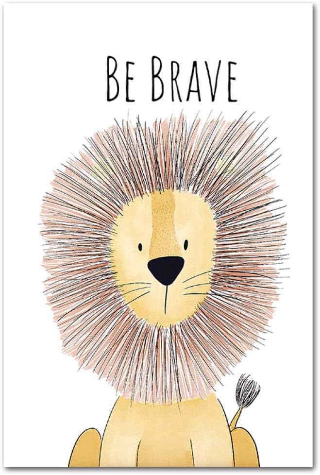 Amazon Com Be Brave Motivational Quote Wall Art Nursery Decor Cartoon Lion Painting Child Pictures Canvas Print Poster Baby Bedroom Wall Decor 30x40cm No Frame Posters Prints