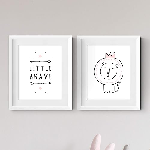 Amazon Com Little Brave Lion Nursery Decor For Girls Scandinavian Animal Wall Art Print Handmade