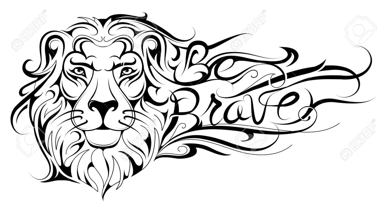 Creative Lion Head Tattoo With Slogan Be Brave Inside The Mane Royalty Free Cliparts Vectors And Stock Illustration Image