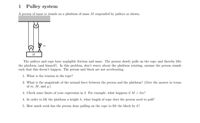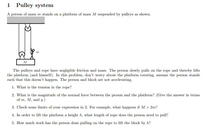 Solved 1 Pulley System A Person Of Mass M Stands On A Pla Chegg Com