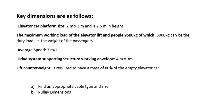 Key Dimensions Are As Follows Elevator Car Platfo Chegg Com