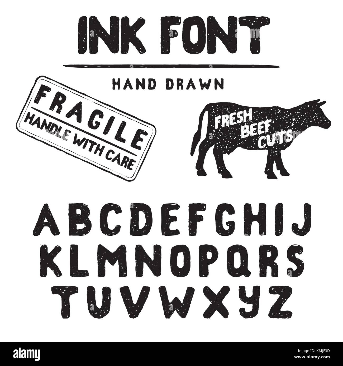 Fatto A Mano Il Timbro Di Inchiostro Font Alfabeto Manoscritta Vintage Testurizzato Retro Disegnati A Mano Il Carattere Tipografico Con Effetto Grunge Buona Per Il Logo Personalizzato O Emblrm Vettore Immagine E