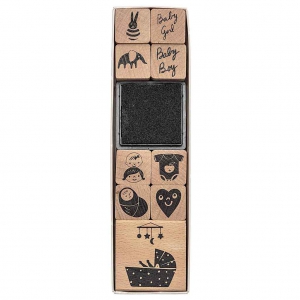 Set Di 9 Timbri Di Legno Con Inchiostro Nascita Di Un Bebe Perles Co