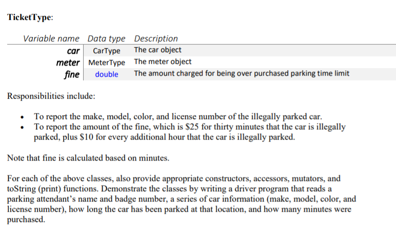 Solved Design A Class To Represent A Parking Enforcement Chegg Com