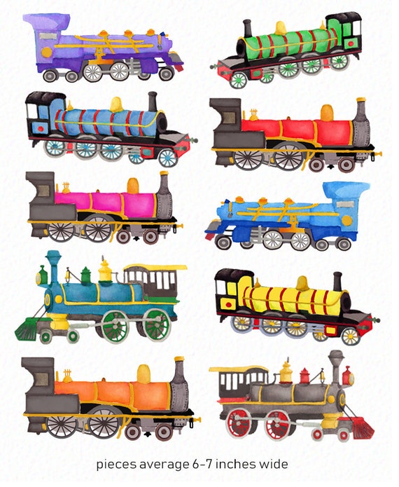 Vintage Train Clipart Watercolor Trains Vehicle Clipart Etsy