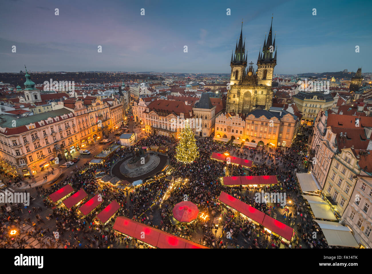 Mercatini Di Natale In Piazza Della Citta Vecchia Di Praga Vista Panoramica Dalla Torre Praga Repubblica Ceca Foto Stock Alamy