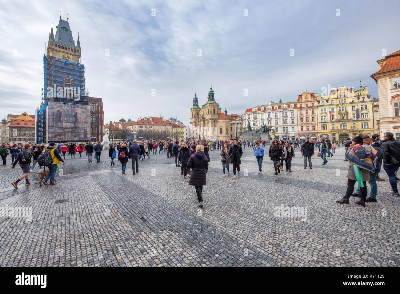 Staromestske Namesti Piazza Della Citta Vecchia Di Praga Repubblica Ceca 10 Marzo 18 Vista Della Piazza Principale Piena Di Turisti Foto Stock Alamy