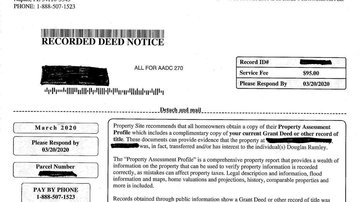 Deed Notice Scam Letters Return To Local Mailboxes
