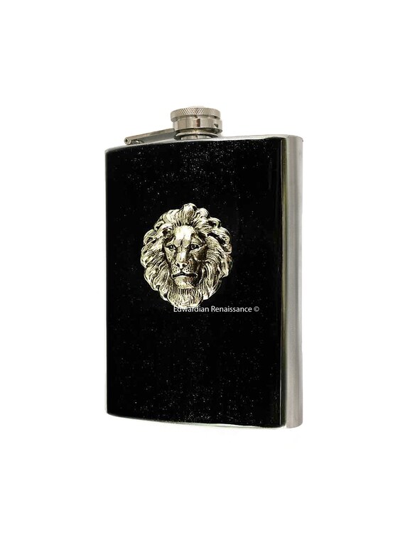 Antique Silver Lion Head Flask Inlaid In Hand Painted Metallic Etsy