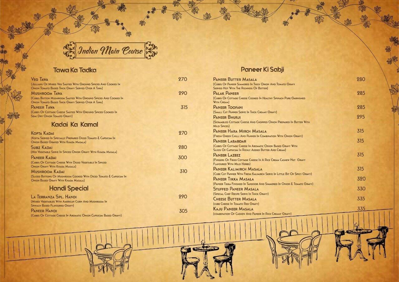 La Terranza Menu Menu For La Terranza Vesu Surat