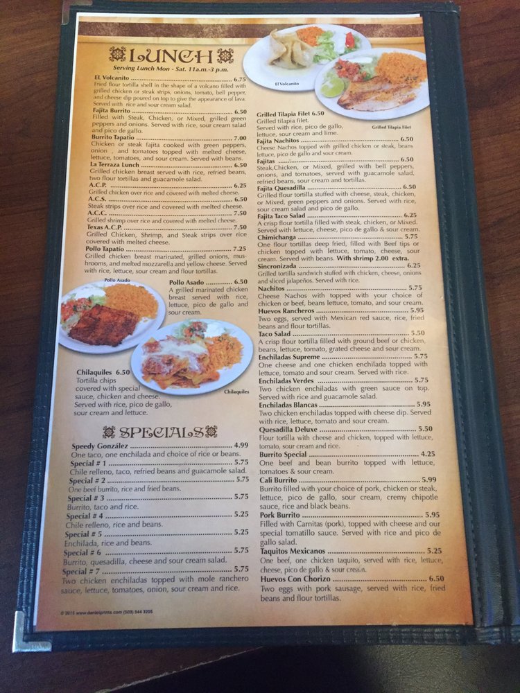 Menu 1 Picture Of La Terraza Mexican Grill Williamsburg Tripadvisor