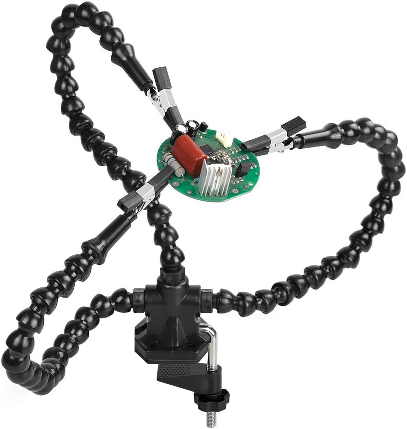 Helping Hands For Soldering is also called third hand that gives you freedom and comfort that mainly includes tools like pcb holders, Magnifying glass etc Here we list down our top 3 favorite Helping Hands For Soldering that helps to make your job easier and provides assistance to make joints proper. Four allmetal flexible gooseneck helping hands are easily positioned where you want them Eliminates the frustration of traditional helping hands Ideal of soldering Stainless Steel Alligator Clamps Stainless steel alligator clamps can be rotated 360 degrees then "locked" into place with knurled thumb nuts Sturdy Steel Base. This is by far the best helping hand I've ever used for soldering!Pretty cheap to make as a DIY project and you'll use it forever!THE WIRE I USED is 5mm arm.