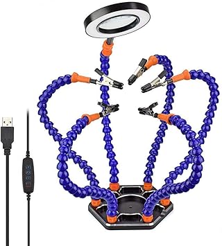 Soldering helping hands are the perfect addition to any home soldering station These small stands prop up your soldering projects Some even come with additional accessories, such as magnifying glasses, LED lights, and soldering stands They free up your hands so that you can focus on the job at hand. EXPAND YOUR WORKSPACE The soldering helping hands base is a clamp on type to bench or tabletop, features soft rubber clamp pad providing a tighter slippingfree position It can be used universally, perfect for computer boards repairer/ jewelry makers/ miniature makers/ arts crafts hobbyists/welding reworker and so on. Product Overview Ideal for precision work like electronics or detail work, this helping hand tool has a stable cast iron base to keep your work steady The magnifier with light is LED for a clearer, better view when soldering and other detail work The magnifier with light features a 2x magnification with a 6x zoom lens to get a close look at your work.