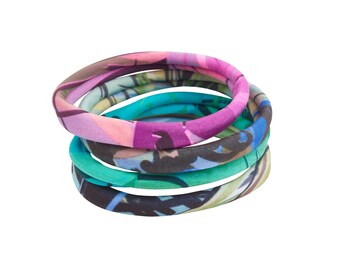 Set Of 5 Soft Hair Ties In Neon Palm Leaves Giddy Up Glamour Boutique