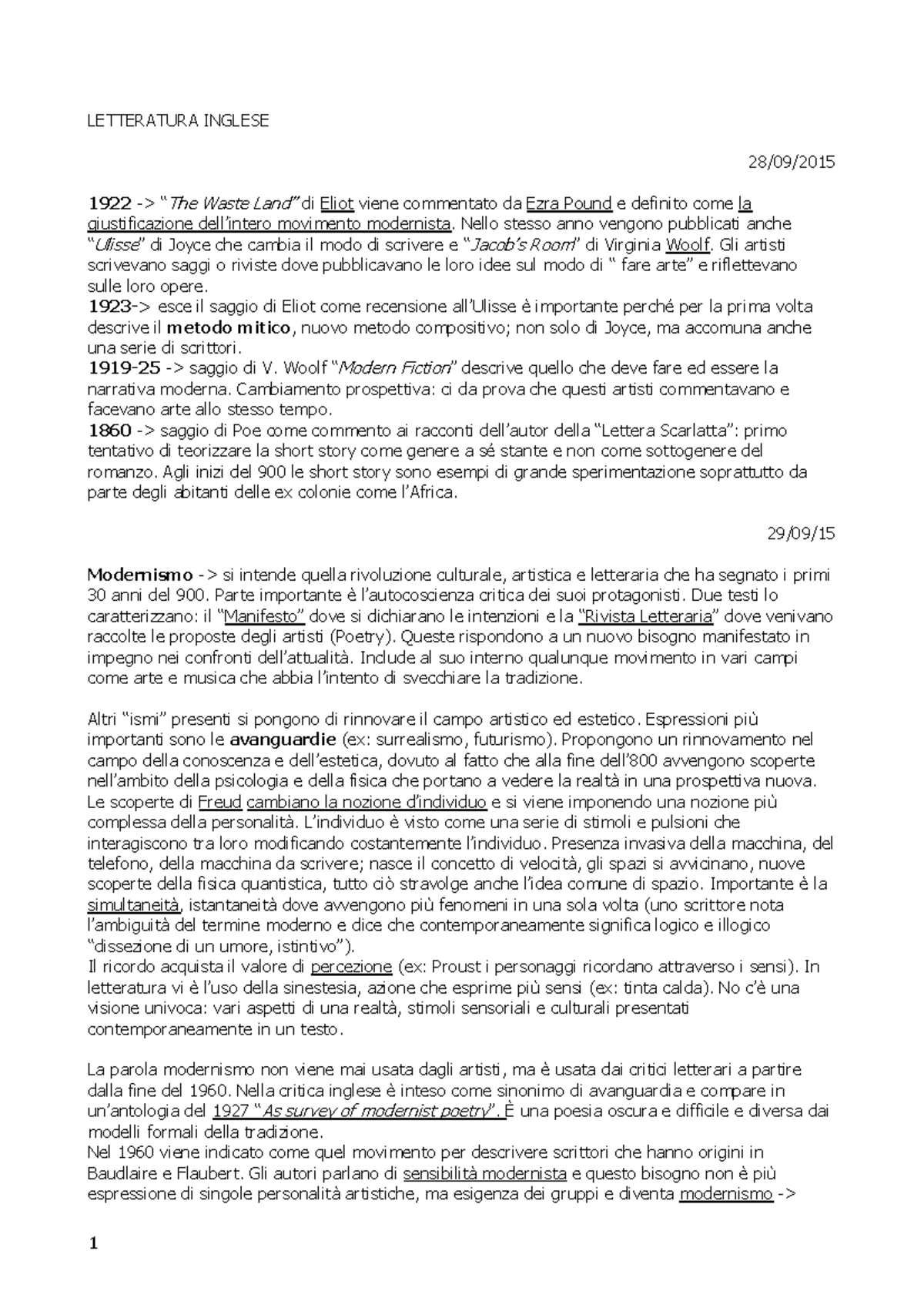 Letteratura Inglese Prof Pallotti 1516 Studocu
