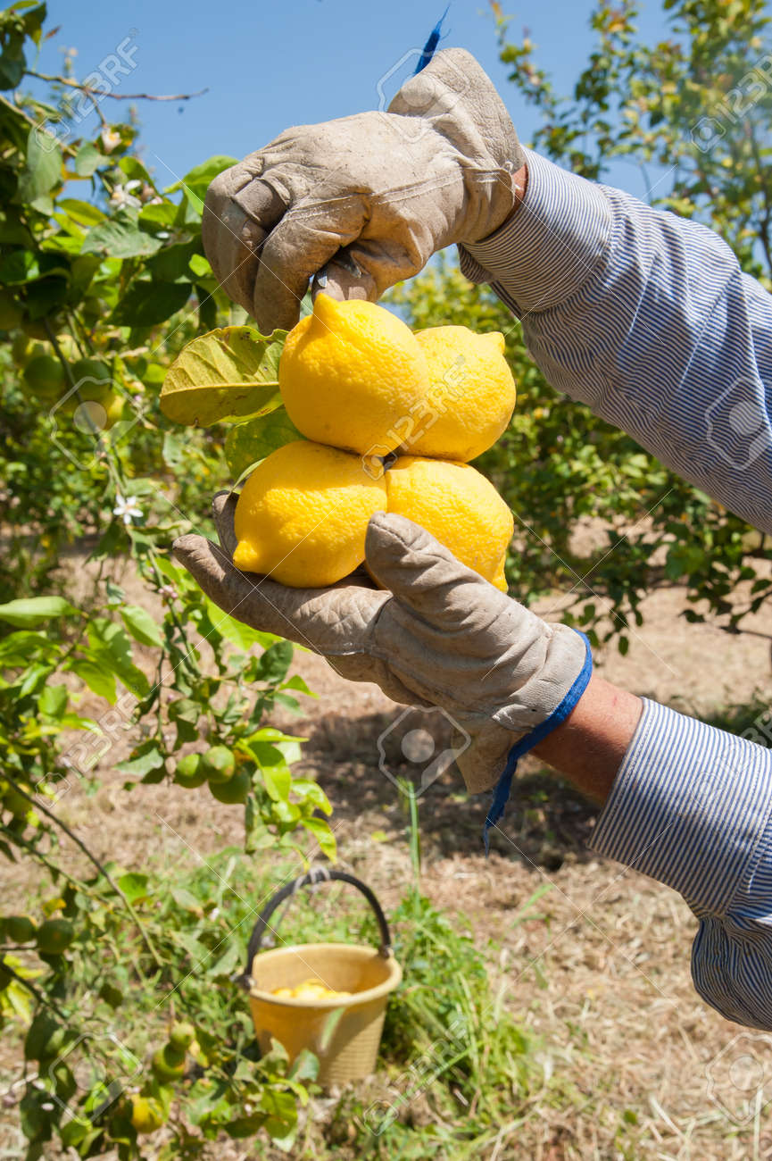 Hand Of A Farmer Picking A Lemon During Harvest Time Stock Photo Picture And Royalty Free Image Image