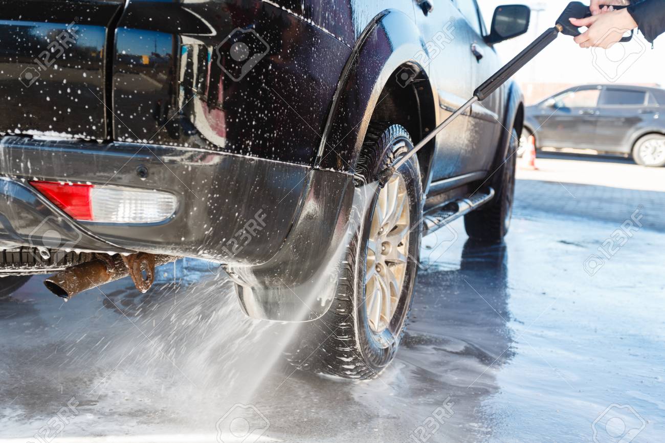 Lavaggio Dell Automobile Con Il Getto Di Acqua Ad Alta Pressione Fotografia Stock Immagine Di Foam Apparecchiatura
