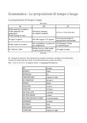 Preposizioni Di Tempo E Luogo Docsity