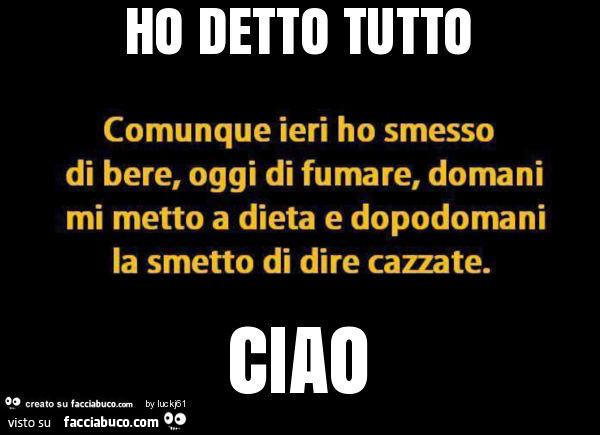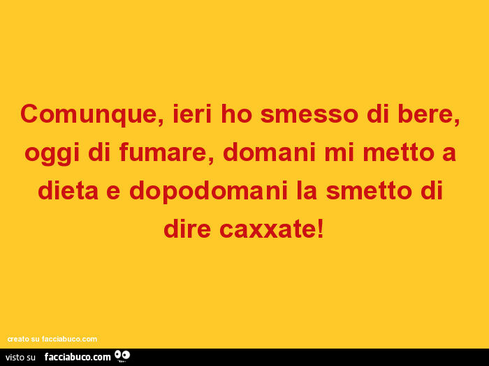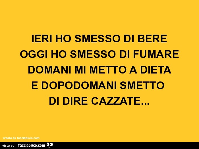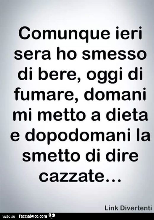 Comunque Io Ieri Ho Smesso Di Bere Oggi Di Fumare Domani Mi Metto A Dieta E Dopodomani Facciabuco Com
