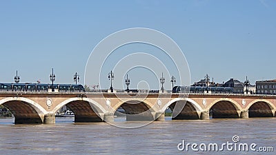 The Stone Bridge At Bordeaux With Tramways Stock Video C Bonnecaze