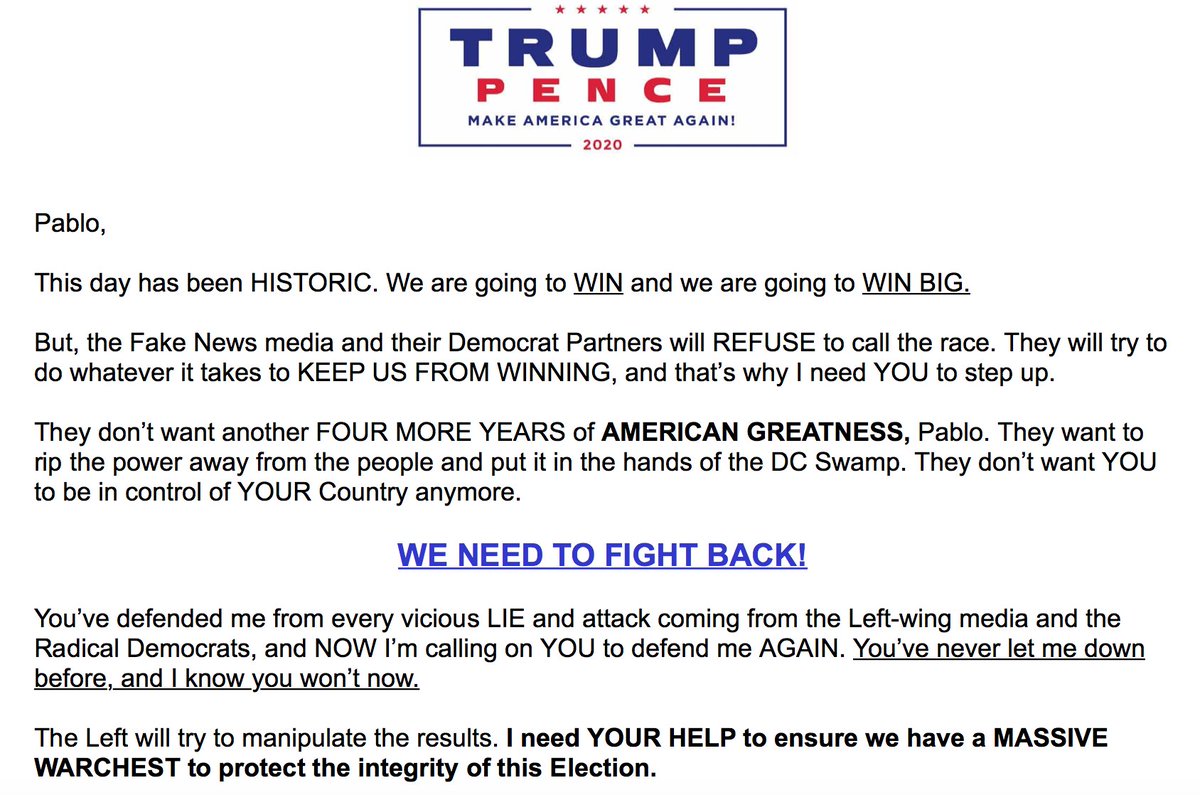 Pablo Ximenez De Sandoval على تويتر La Campana De Trump Manda Un Email Pidiendo Dinero Para Una Posible Batalla Legal Sobre El Resultado Election