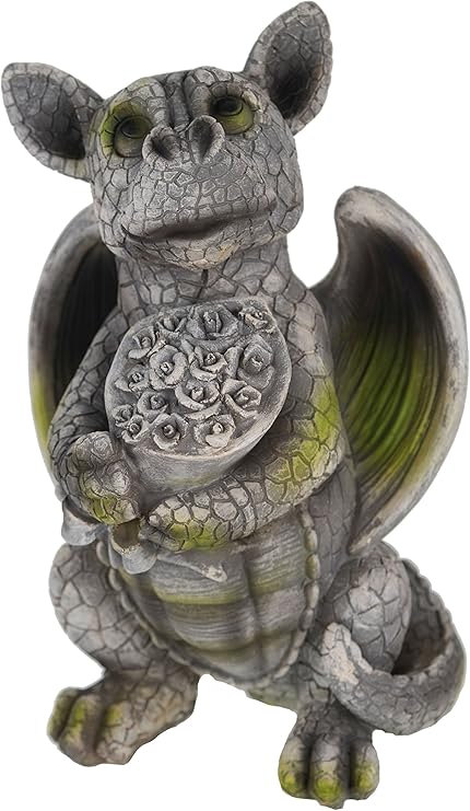 Cucciolo Di Drago Con Bouquet Statua Di Drago Da Giardino Con Fiori Amazon It Giardino E Giardinaggio