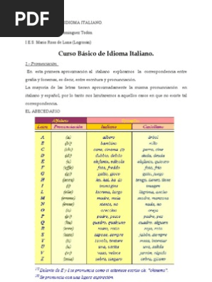 Milagros me encanta el idioma italiano () Andrés la verdad he disfrutado mucho de este curso y pienso seguir estudiando los demas cursos de Italiano para poder intentar dominar el idioma pues me interesa mucho no solo hablarlo sino tambien dominarlo (). Apostila de Italiano Básico Danck Silva Curso Básico de Italiano Dicas de pronuncia / Pronunzia A pronúncia em italiano muitas vezes é a mesma em português, apesnas um pouco mais carregada, e é aí que se exige um pouco de conhecimento prévio do idioma. El italiano es una lengua de origen latino, al igual que el español o el portugués, y por ello algo más fácil de aprender para un hispano hablante frente a otras lenguasEl italiano sigue teniendo ese empuje de lengua romántica y para los negocios por la cercanía con España En el curso, aprenderás fácilmente el vocabulario, las expresiones prácticas y la pronunciación correcta.