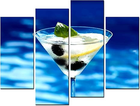 Amazon Com Smartwallart Wine Paintings Wall Art Cocktail With Lemon And Mint Near Blue Swimming Pool 4 Panel Picture Print On Canvas For Modern Home Decoration Posters Prints