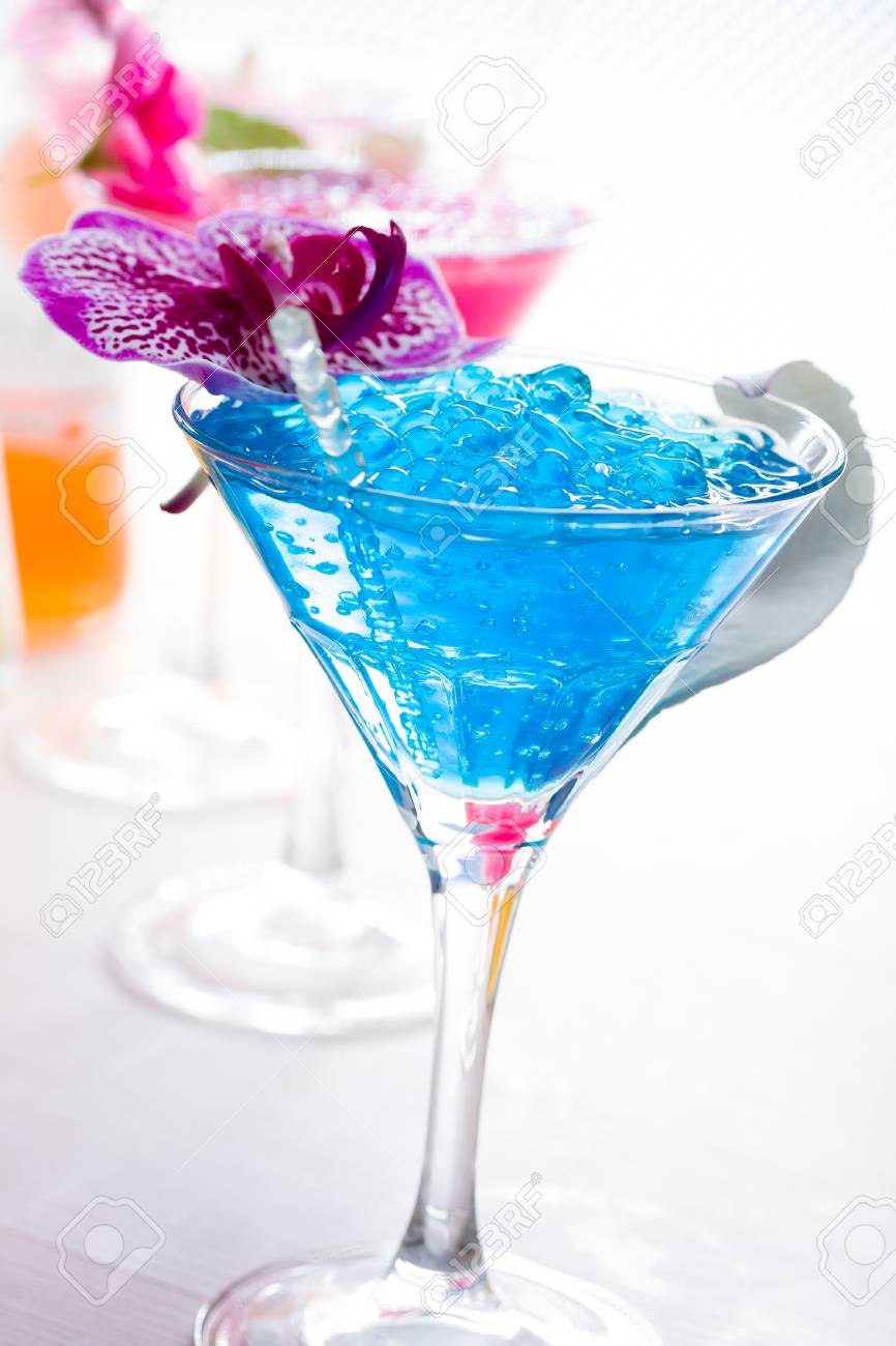 Blue Swimming Pool Cocktail With Caviar And Flower Petals Stock Photo C Netfalls