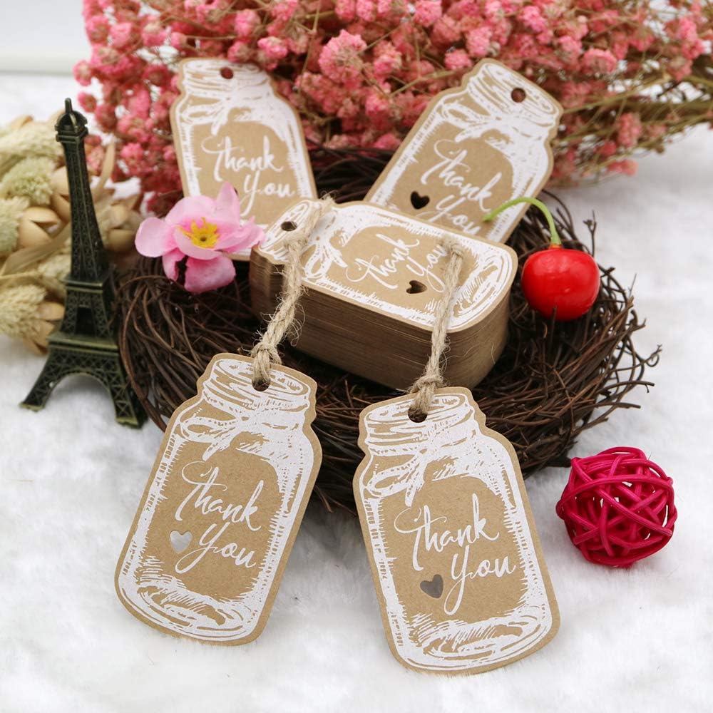 7 5 Cm Etichette Marroni E Bianche Per Arti E Mestieri 4 5 100 Pezzi Kraft Grazie Etichette A Forma Di Bottiglia Con Spago Di Iuta Da 30 M Vasetti Per Marmellata Etichette Per Barattoli