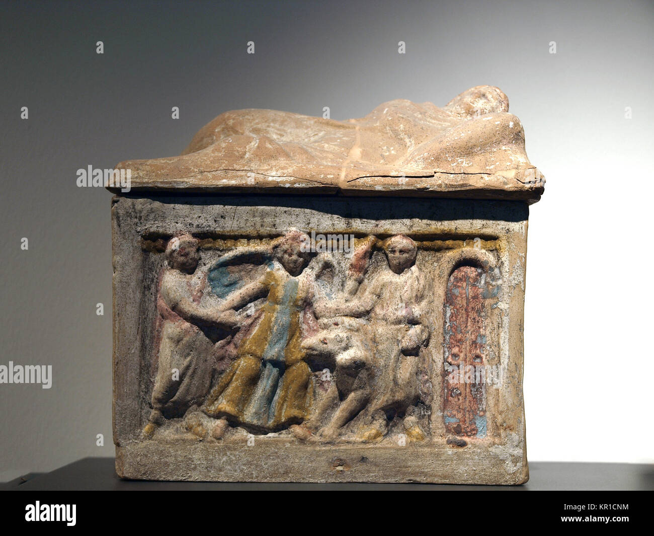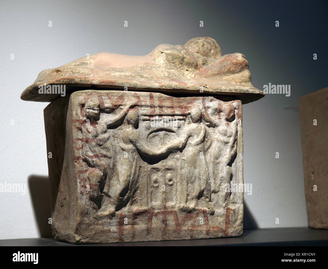 Antica Arte Etrusca Terracotta Dipinta Urna Cineraria Foto Stock Alamy