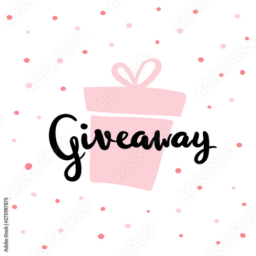 Giveaway Poster Template For Social Media Marketing Smm Banner Design For Promotion Of Social Network Account By Giving A Gift Hand Drawn Calligraphy Illustration With Phrase Giveaway Buy This Stock Vector