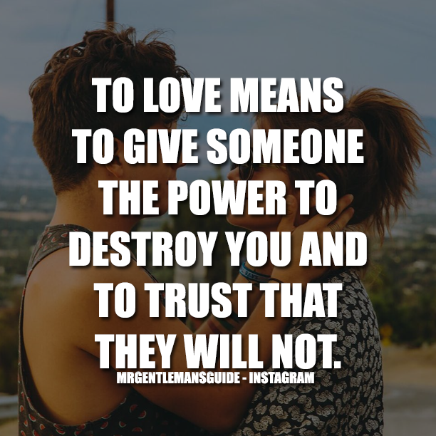 You know that you have been lied to when the person you swore your trust to never held up their end of the bargain and that you believed them all the way before you even realized the truth 32 “Love is giving someone the power to destroy you, but trusting them not to” – Unknown. Quotes about Love QUOTATION – Image Quotes Of the day – Description Love is giving someone the power to destroy youbut trusting them not to Sharing is Caring – Don’t forget to share this quote !. It means that you open yourself up completely, allow yourself to be completely vulnerable because you trust the person you love won't hurt you It's kind of like walking up to someone, offering up your cheek and saying 'I love you Punch me in the face' If they do, you get hurt If they don't, then they love you too You can write volumes.