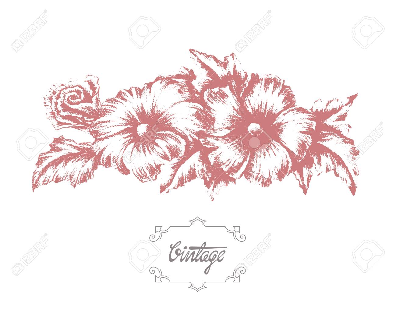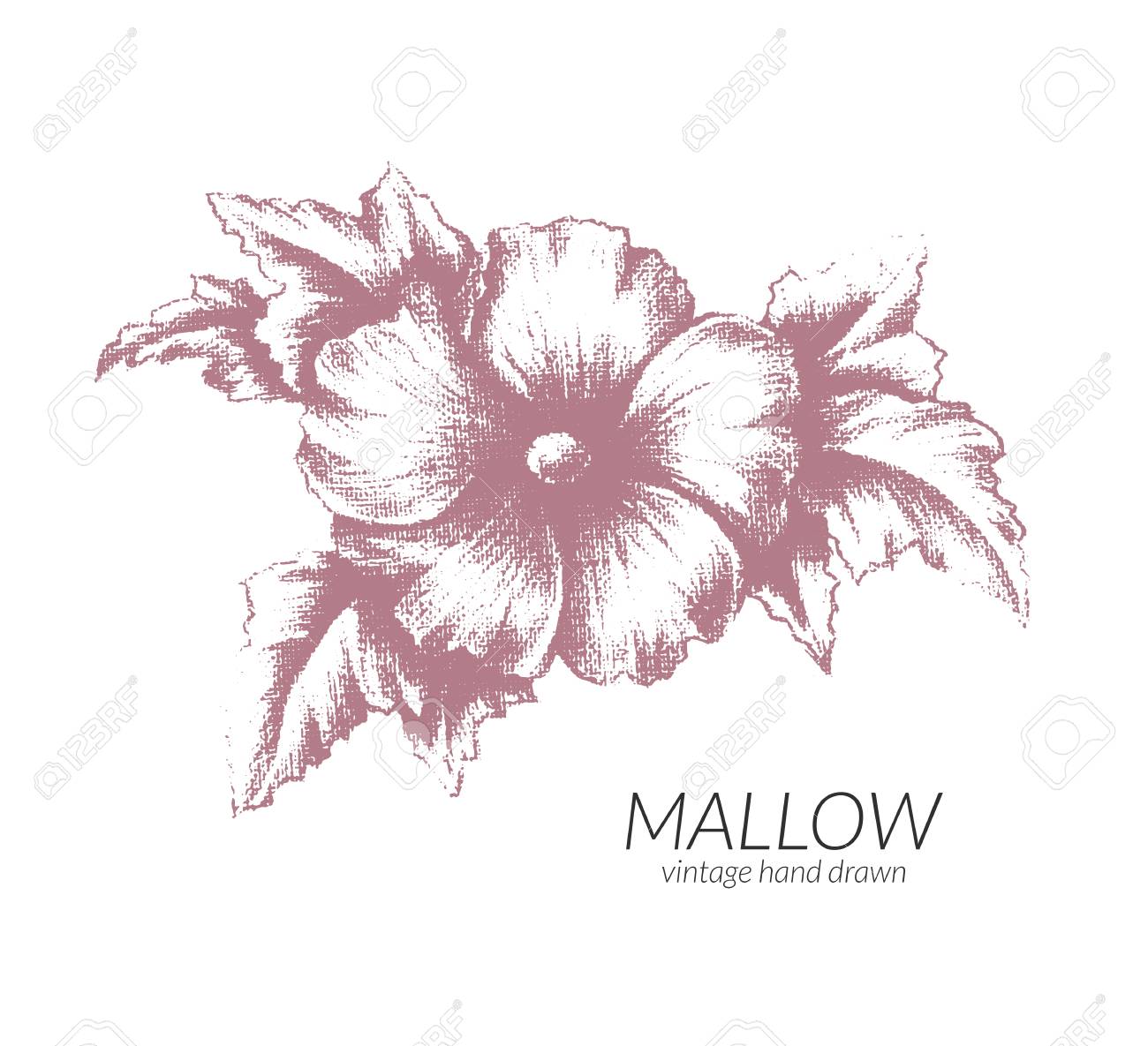 Vettoriale Vettore Isolato Fiori Di Malva Epoca Per Il Design Retro Decorazione Floreale Monocromatico Banner Stampa Image
