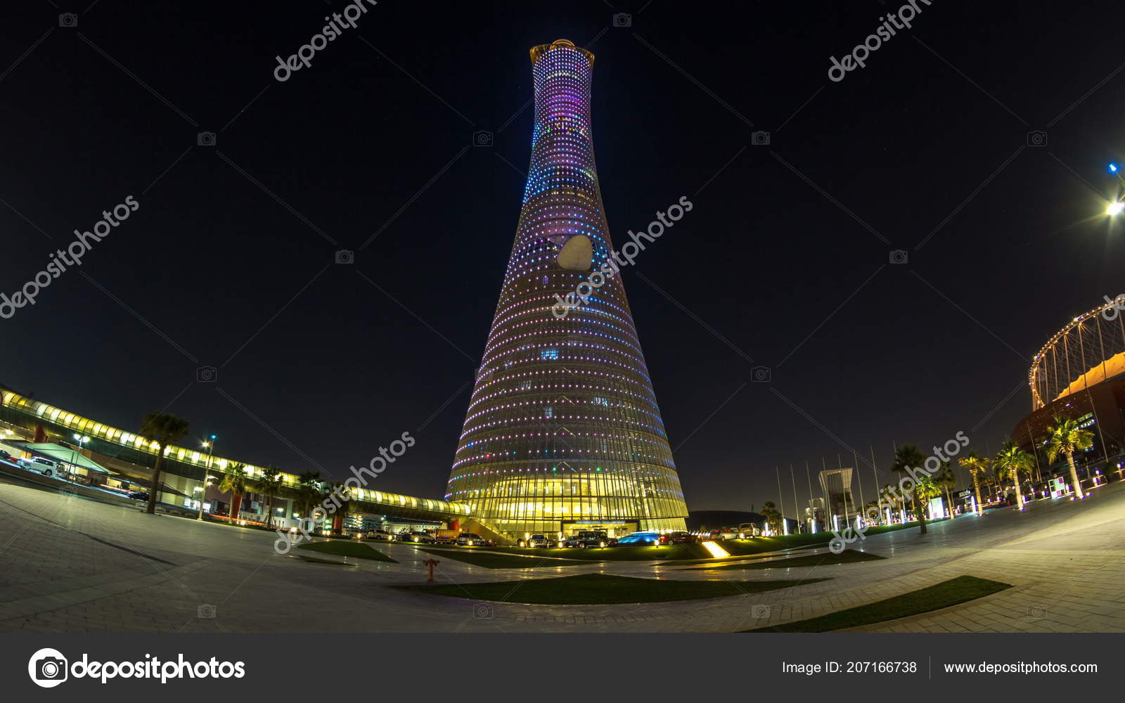 Aspire Tower Aka Torch Hotel In Doha Qatar At Night Editorial Photography Image Of High Qatari