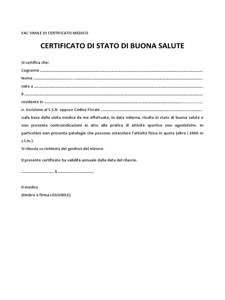 Certificato Buona Salute