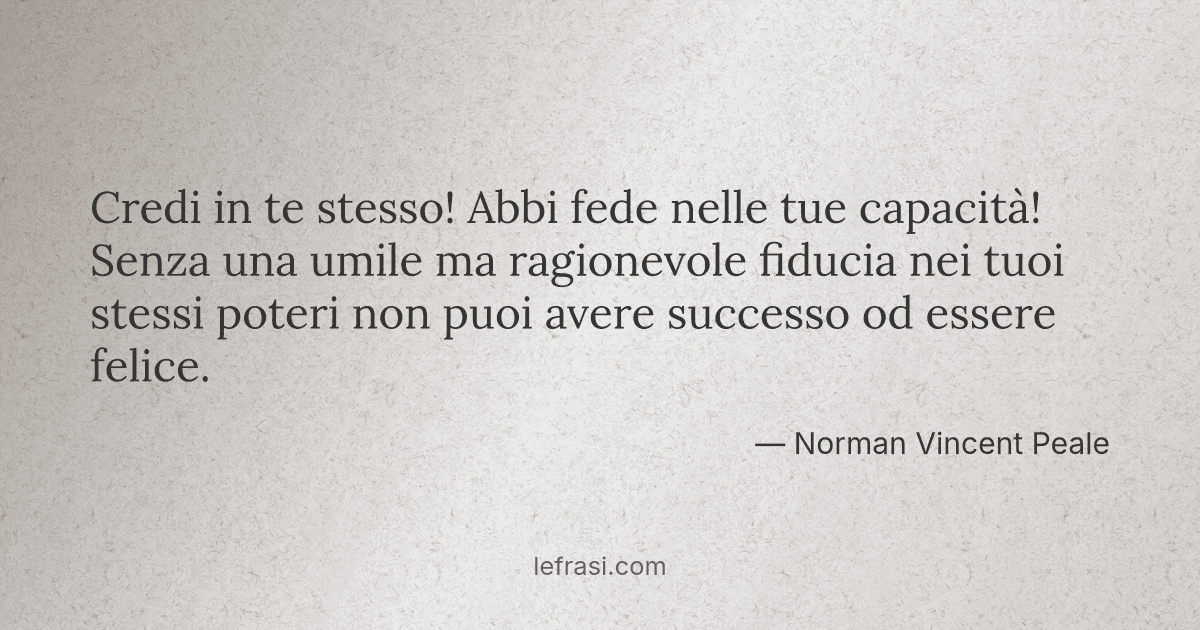 Citazioni sulla fiducia in te stesso 55 citazioni e detti. Credi in te stesso sempre Credi alle tue qualità, alle tue capacità perché nessuno lo farà Tanto la gente farà finta di credere in te ma lo farà sempre e solo per convenienza Dario Di Francesco Composta martedì 12 giugno 18 Leggi un'altra Frase Scopri Tutti gli Argomenti. Credi sempre in te stesso anche quando gli altri non sono disposti a farlo Non puoi credere in te stesso facendo dipendere il tuo giudizio in base a quello che dicono le altre persone di te Tu sei e devi essere sempre consapevole di cosa volere e come ottenerlo, indipendentemente se le altre persone dicono che potrai farcela o menoHo imparato che nella vita devi saper ascoltare, sentire e.