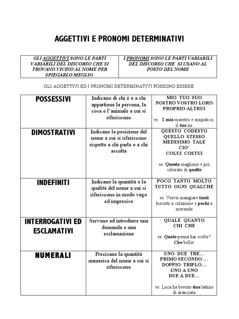 Aggettivi E Pronomi Determinativi 1