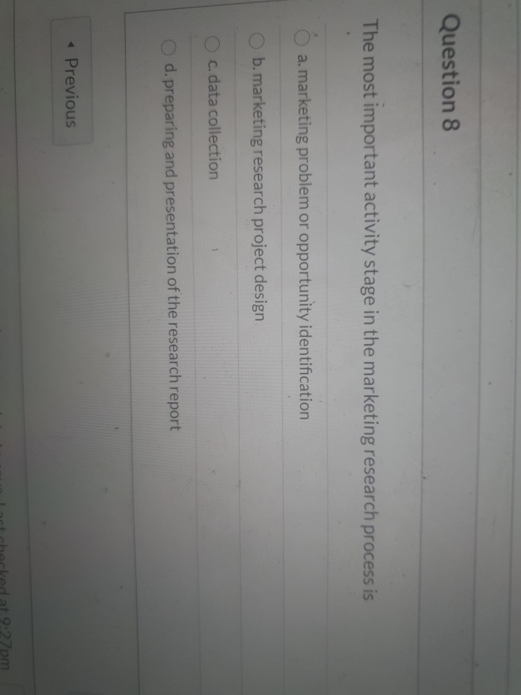 Solved Question 8 The Most Important Activity Stage In Th Chegg Com