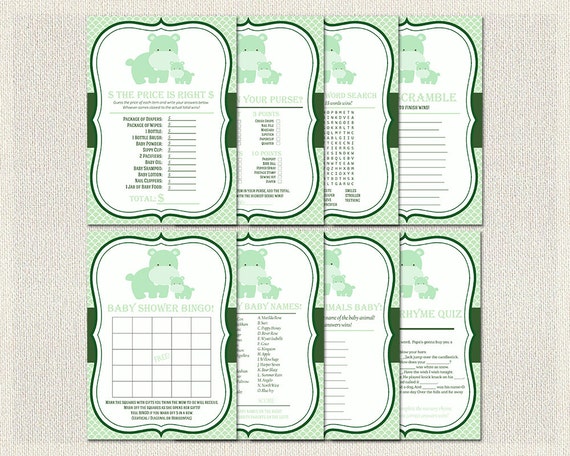 Baby Shower Games Gender Neutral Hippopotamus Baby Shower Printable Games Pack Green Hippo Instant Download Printable Pdf Bingo Baby Bs 163 By Pixie Perfect Baby Showers Catch My Party