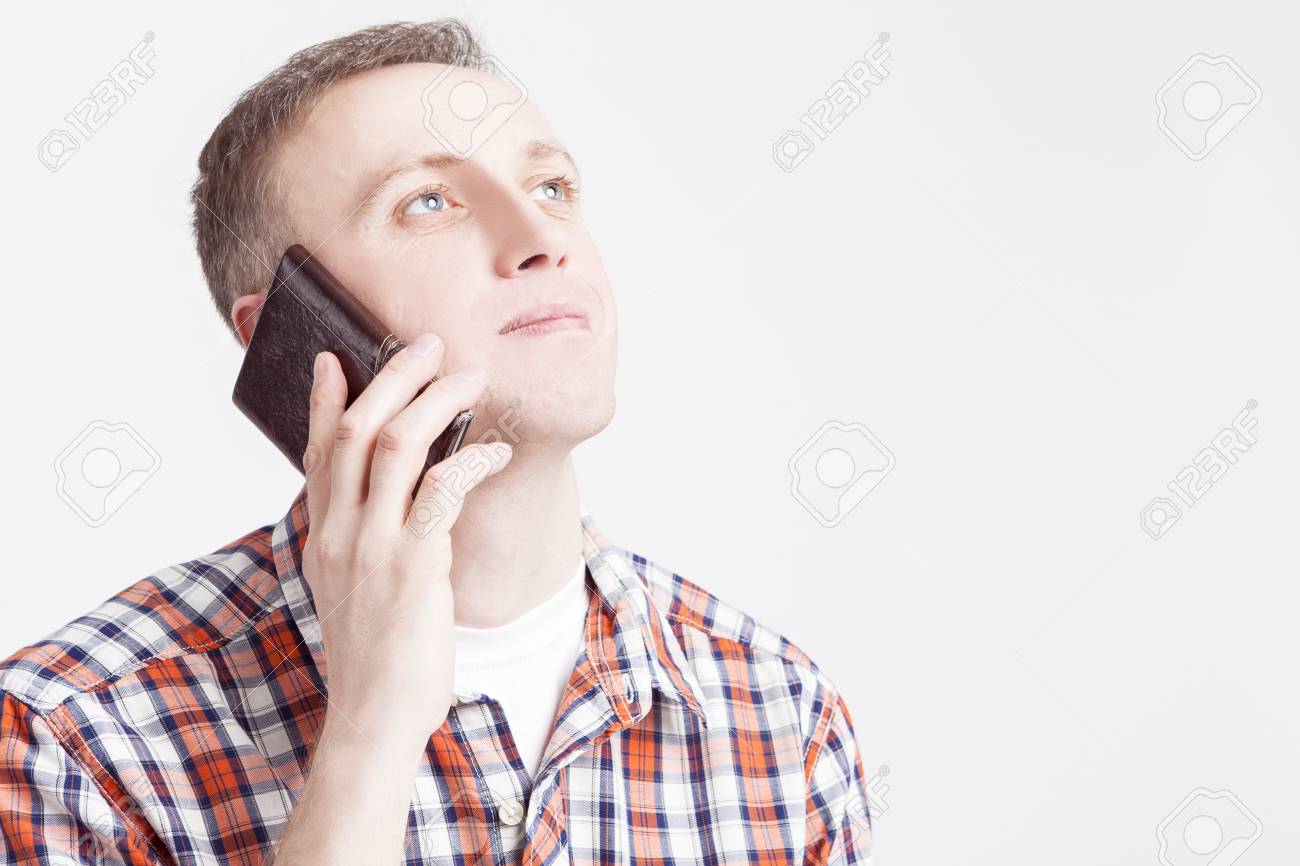 Immagini Stock Concetti E Idee Di Stile Di Vita Della Gioventu Ritratto Del Primo Piano Dell Uomo Caucasico Che Parla Sul Cellulare Contro Fondo Bianco Immagine Orizzontale Image