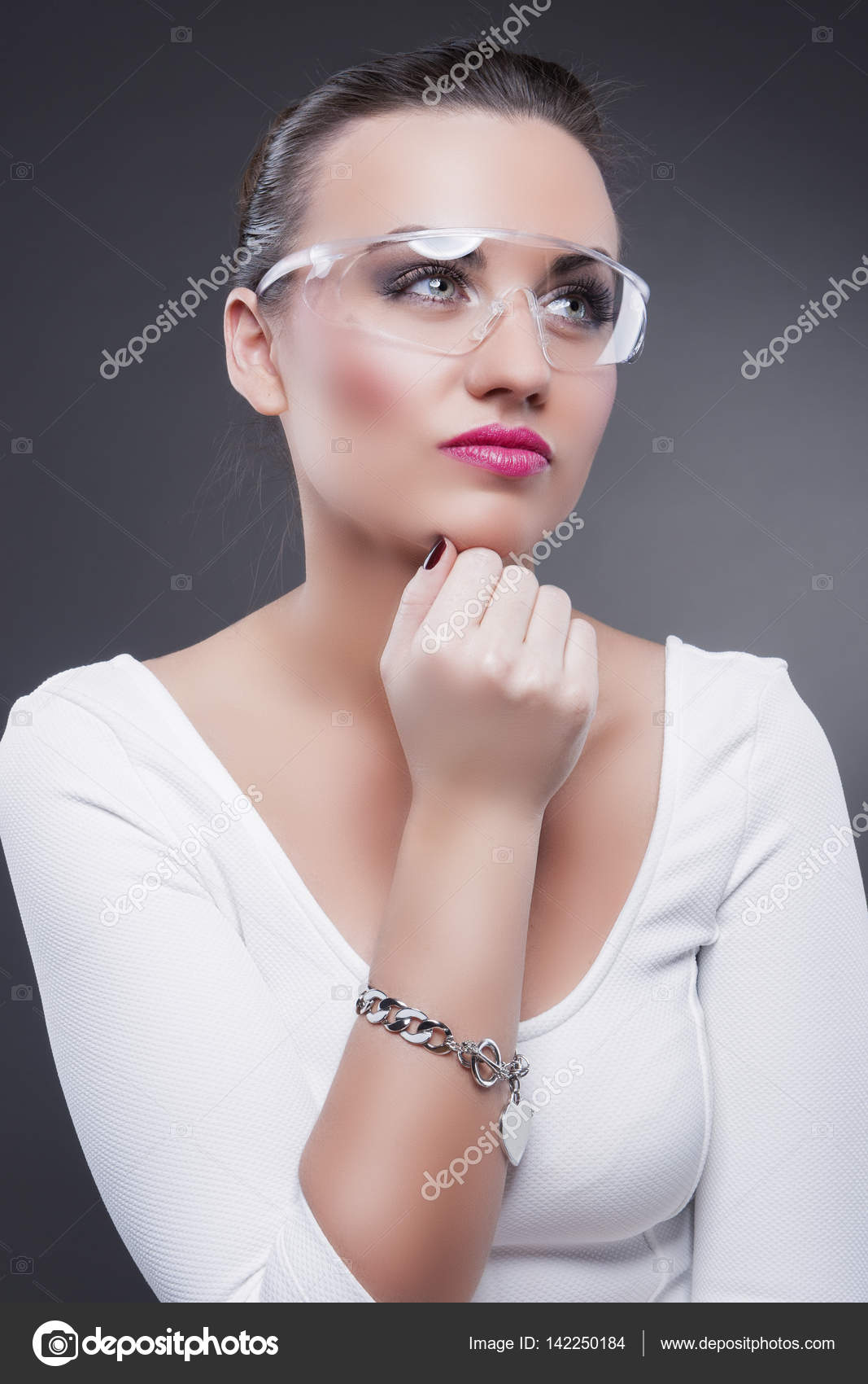 Concetti Ed Idee Di Modo Ritratto Del Primo Piano Della Donna Castana Caucasica Sensuale Positiva In Vetri Fotografia Stock Immagine Di Caucasico Background