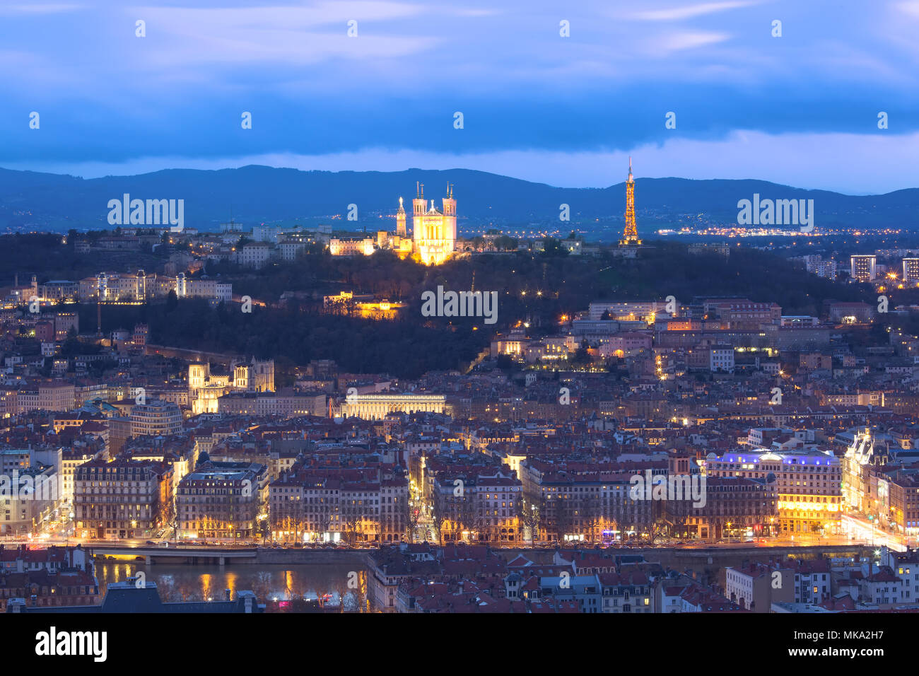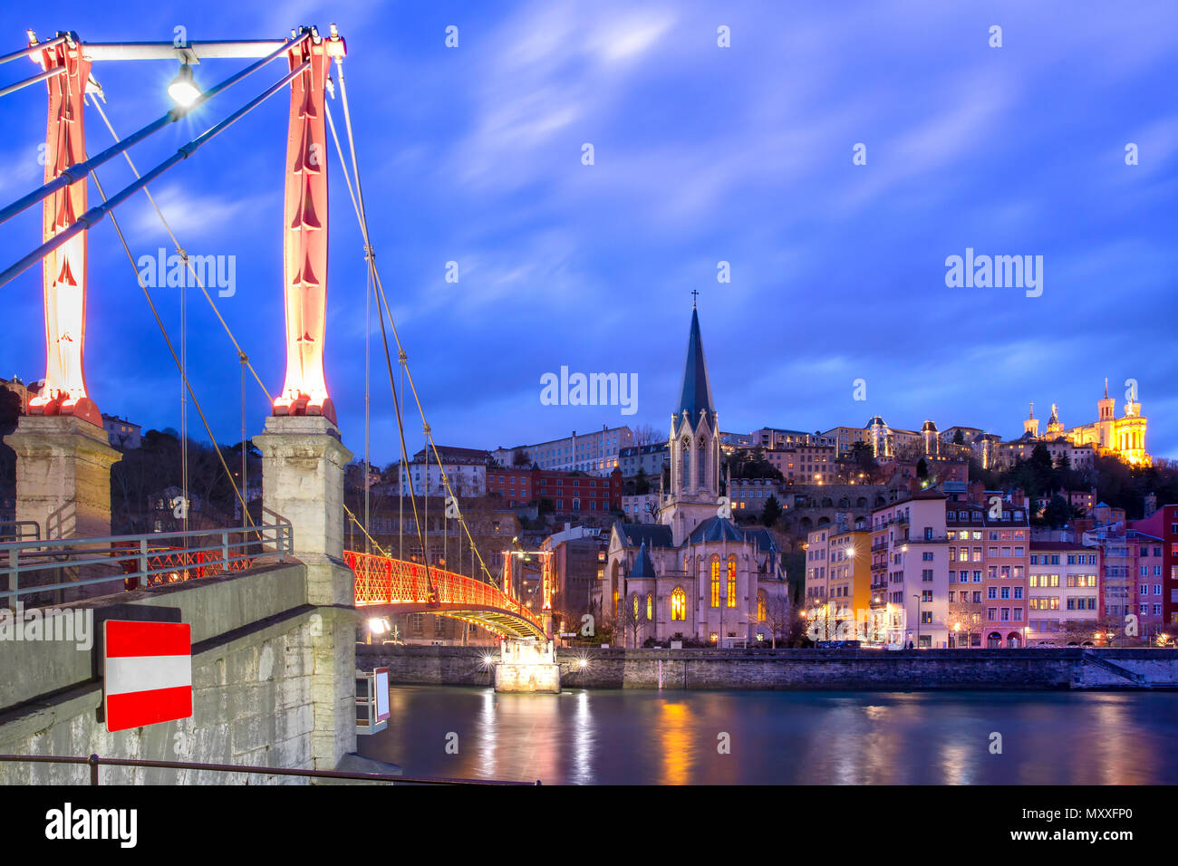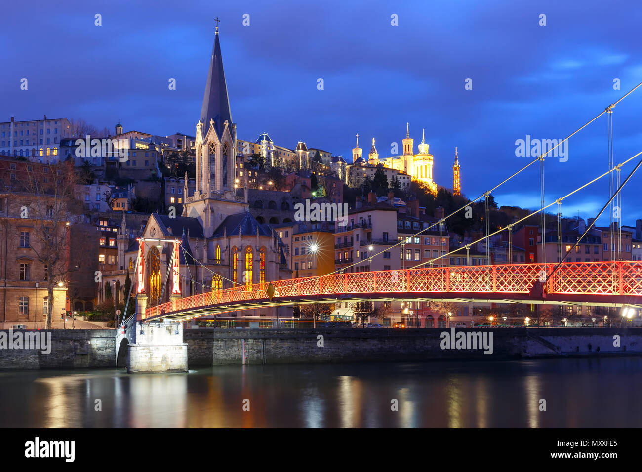 Di Notte La Citta Vecchia Di Lione Francia Foto Stock Alamy