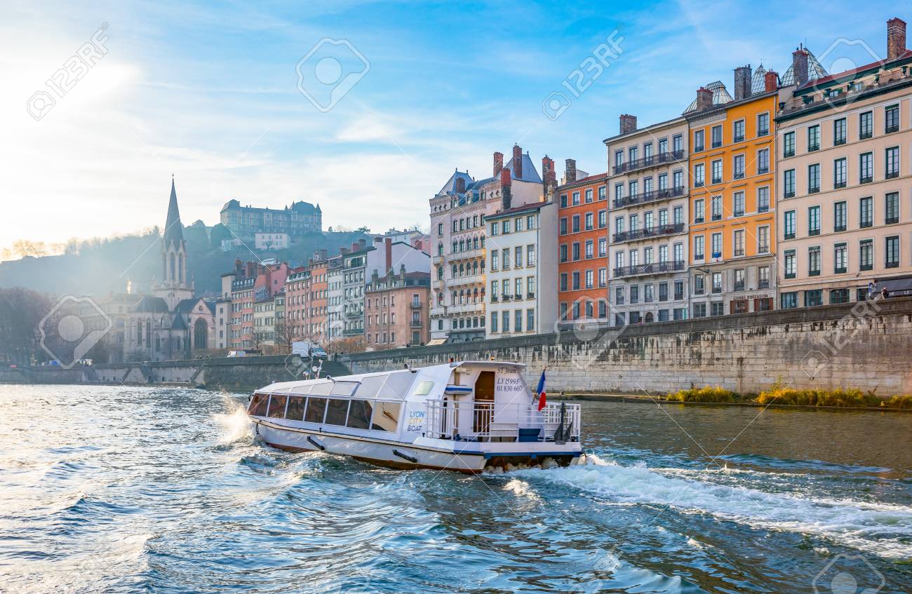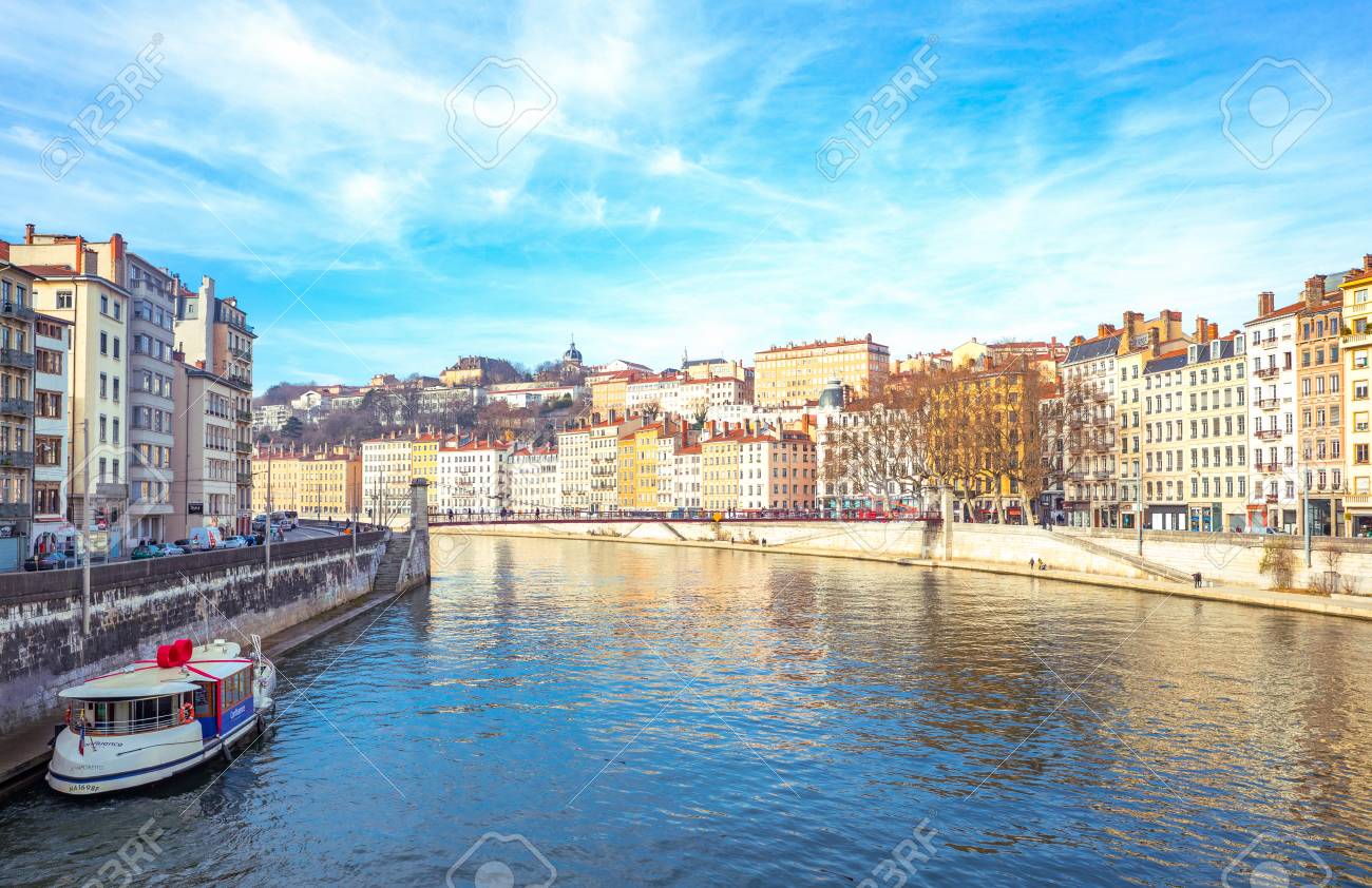 Immagini Stock Citta Vecchia Di Lione E Il Fiume Saone 17 Luglio Lione Francia Image