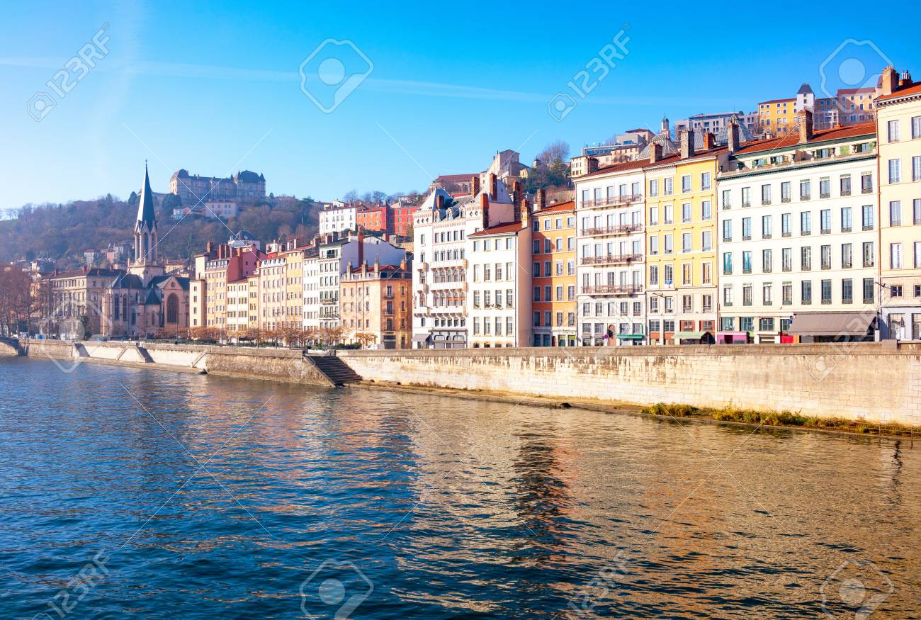 Immagini Stock Francia Lione Le Architetture Della Citta Vecchia Vista Dal Fiume Saone Image