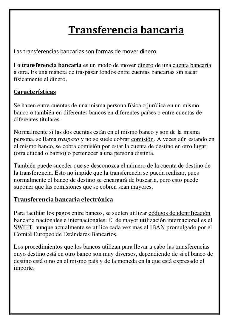 Que Es Una Transferencia Bancaria Significado Caracteristicas