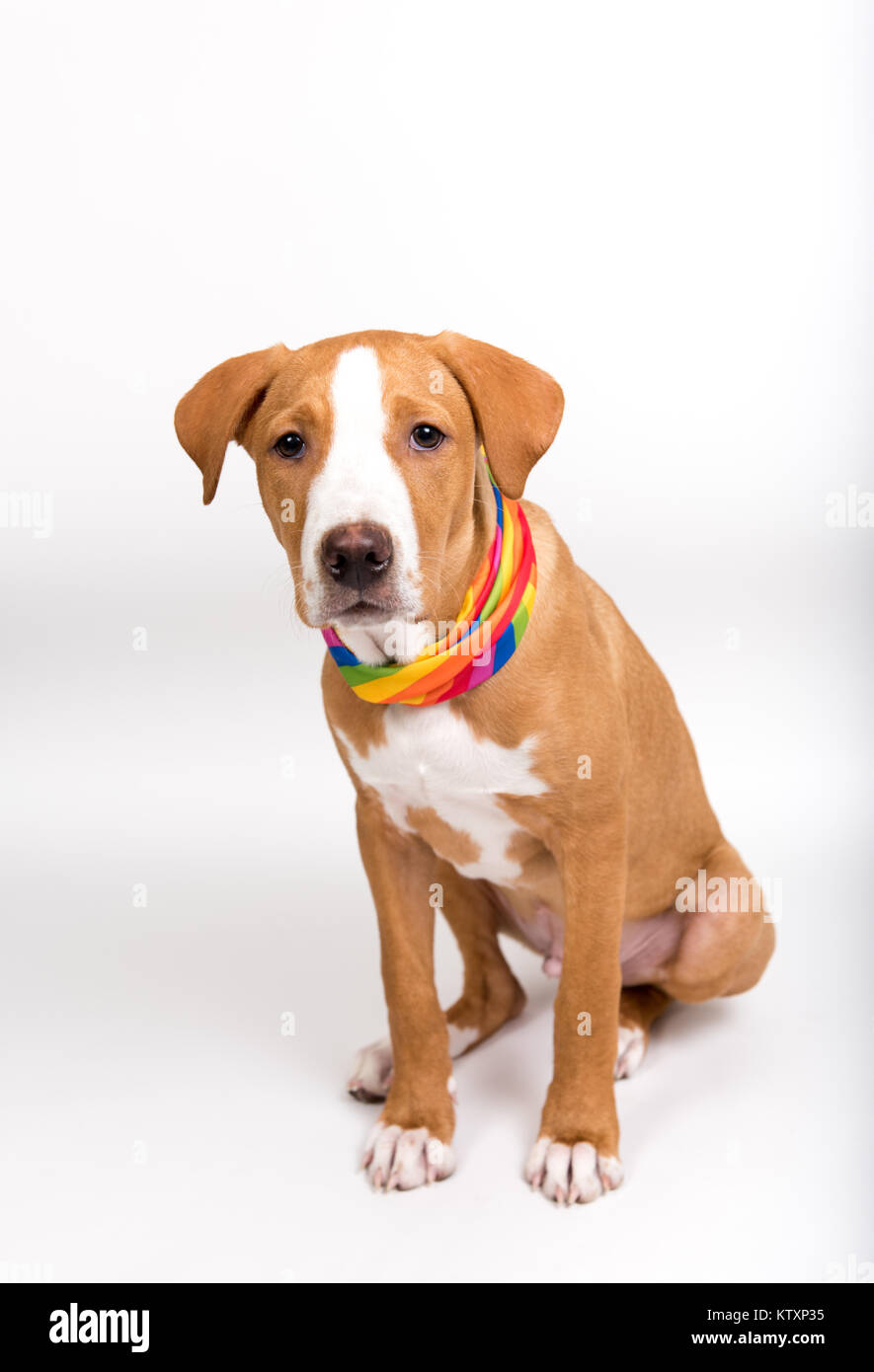 Colore Fulvo Giovane Cane Indossando Bandana Arcobaleno Foto Stock Alamy
