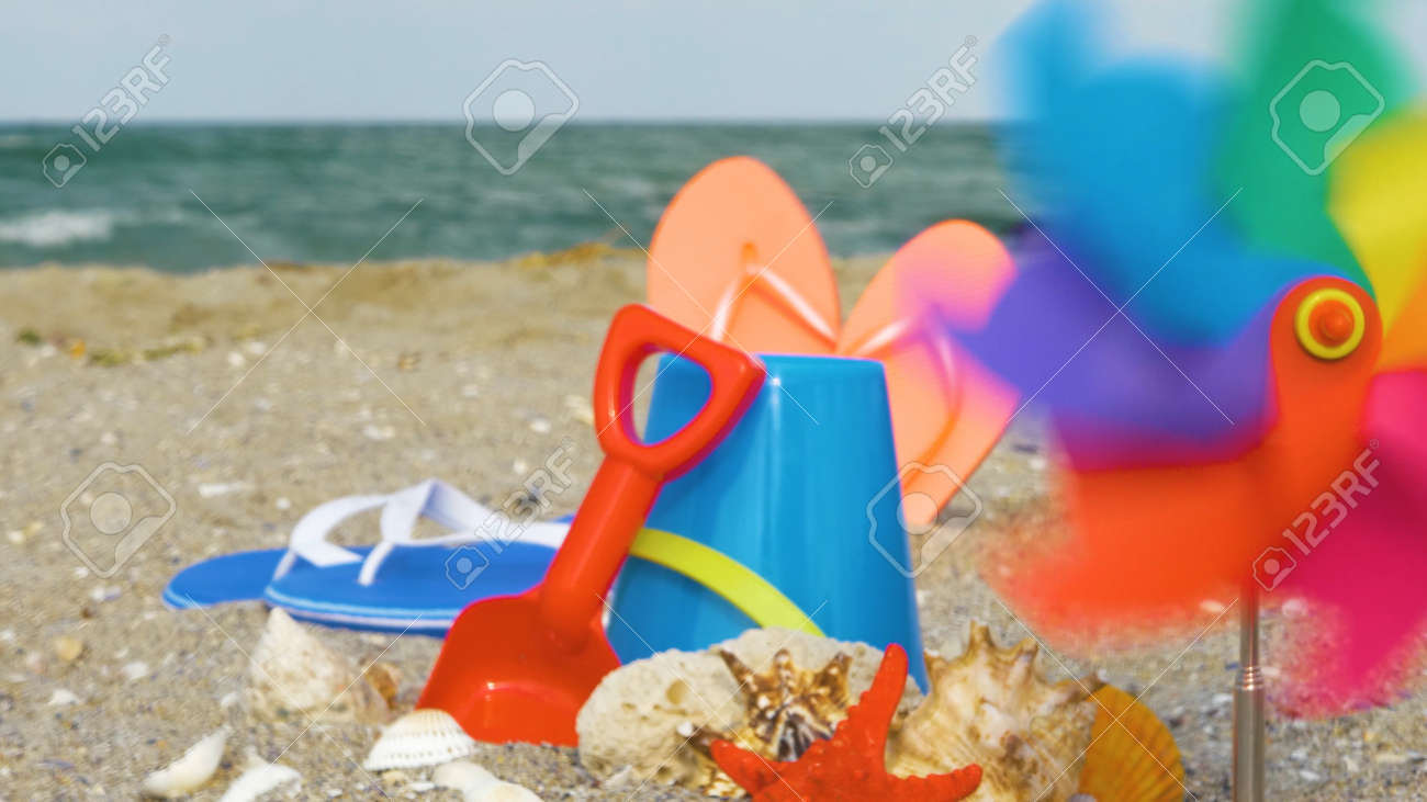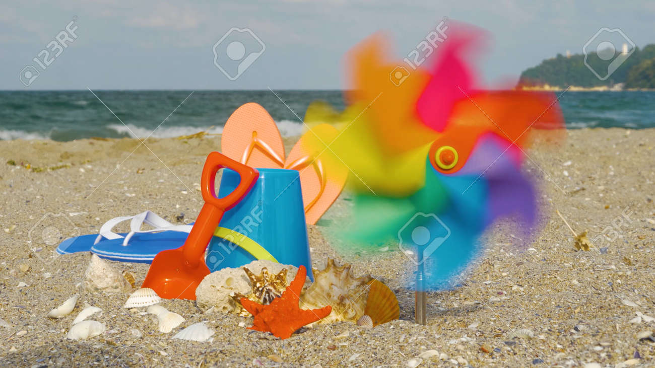 Children S Beach Toys On Sand Beach In Summer Day Beach Kid S Stock Photo Picture And Royalty Free Image Image